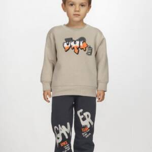 242-3034 Σετ φόρμας με κουκούλα και ανάγλυφο τύπωμα μπροστά, για αγόρια