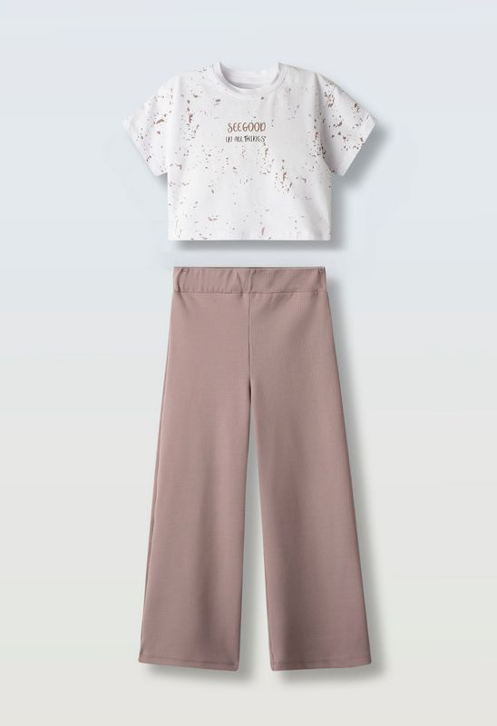24-04360 Μπλουζάκι πλεχτό, διχρωμία, για κορίτσια