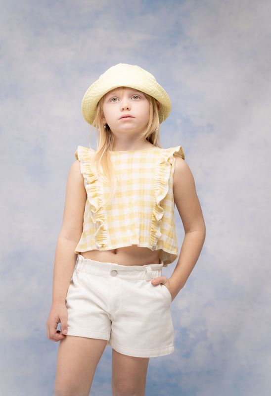GNS729 Σόρτς-φούστα , με λάστιχο στη μέση, και διακοσμητική λεπτομέρεια μπροστά