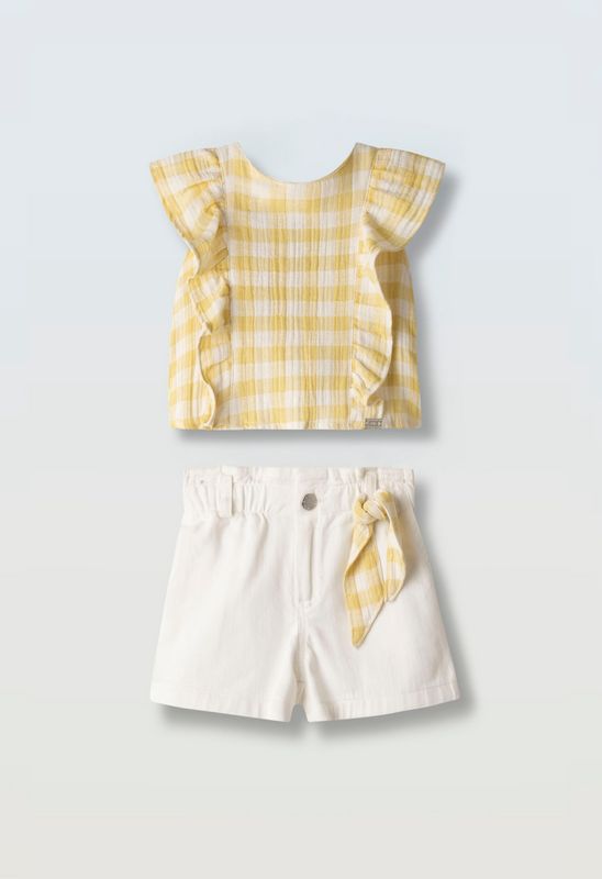 4593 Σετ βερμούδα με κοντομάνικο μπλουζάκι baby φούτερ, με τυπώματα πάνω-κάτω