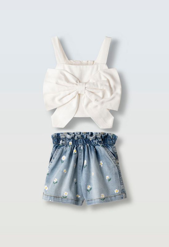 4579 Σετ παντελόνα με πλαινές τσέπες, και αμάνικο μπλουζάκι με διακοσμητικό ρέλι στο στήθος
