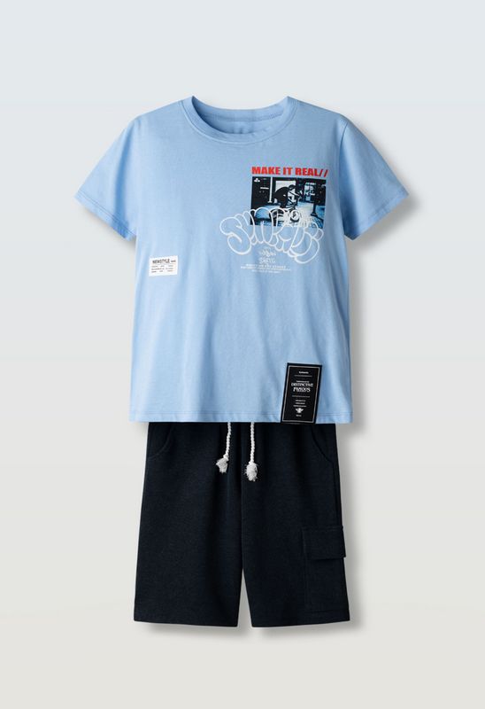 256002 Σετ σόρτς μακό all over print, με κοντομάνικο crop μπλουζάκι