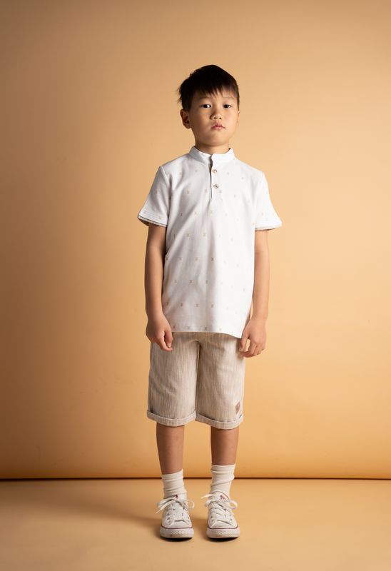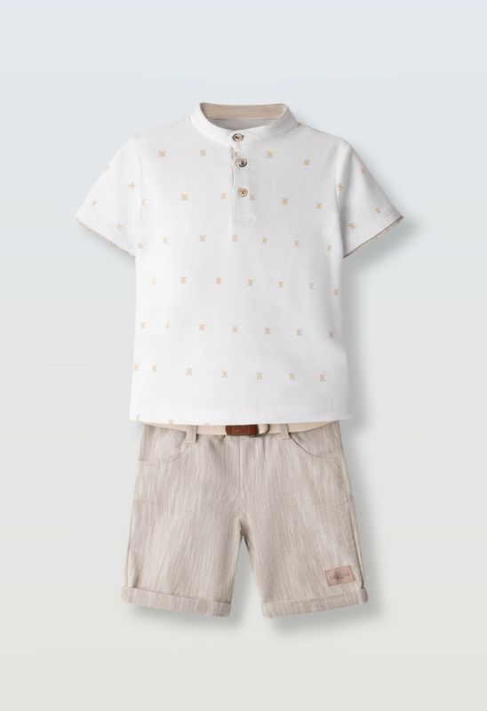 254839 Σετ βερμούδα με πόλο μπλουζάκι με γιακά μάο