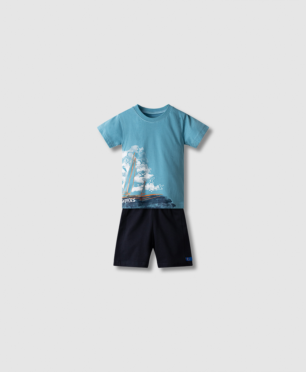 254808 Σετ βερμούδα τζιν με πόλο μπλουζάκι