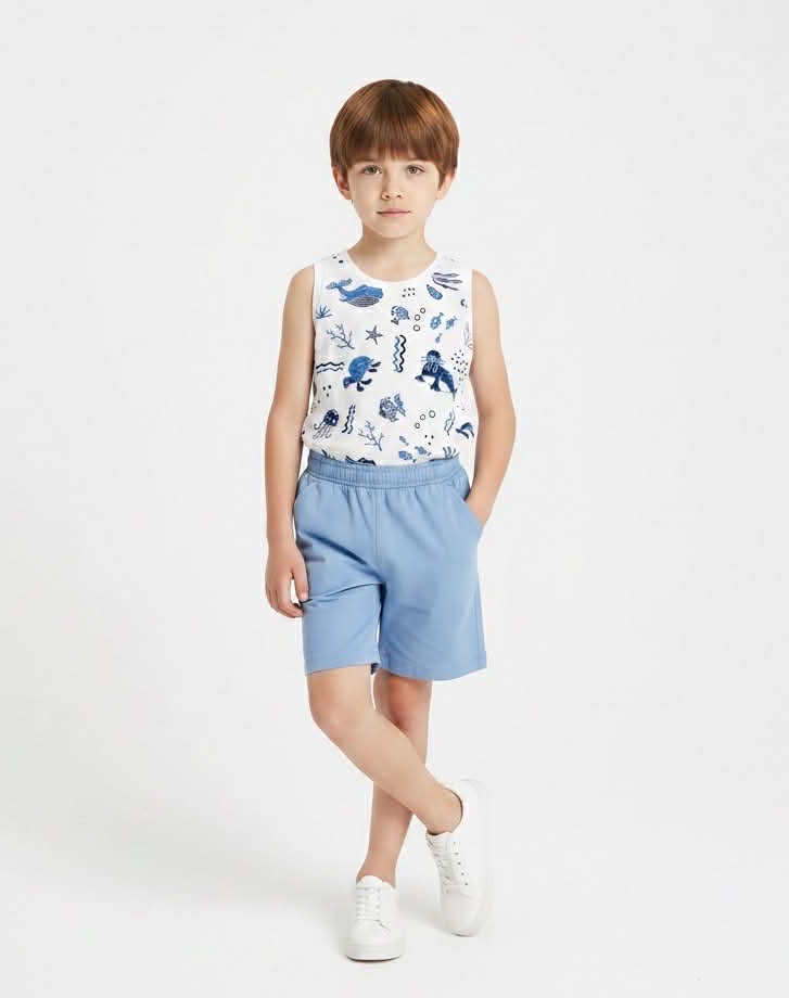 254713 Σετ βερμούδα μακό με τύπωμα στο μπλουζάκι