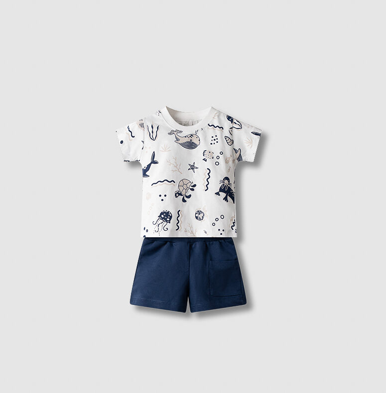 266839 Παιδικό σετ βερμούδα μακό, με τύπωμα στο μπλουζάκι, hashtag