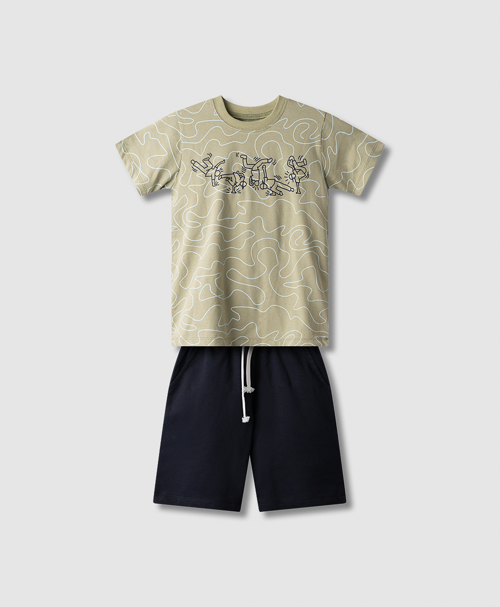 254741 Σετ βερμούδα σταθερή με πόλο μπλουζάκι με γιακά μάο.
