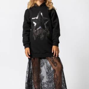 243245 Φόρεμα βαμβακερό με τούλι στο τελείωμα