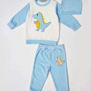 MI243 Σετ φόρμας βελουτέ με σκουφάκι “dino” αγόρι βρεφικό